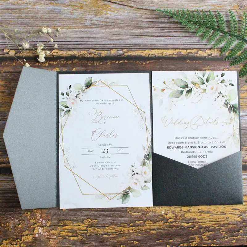 Carte d'invitation de mariage noire, poc...
